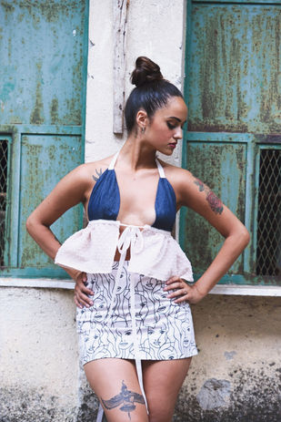 Previous Work - Grey Blouse, Pinstriped skirt and Navy-blue skirt